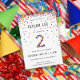 Rainbow 2nd birthday / second birthday party invitations! Featuring your kid's party details and a "2" in confetti, with fun rainbow coloured confetti circles sprinkling from the top of these cute invites