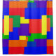 This colourful shower curtain displays a patchwork quilt design in rainbow colours with a textured look.