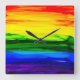 Rainbow Alcohol Ink Abstract Square Wall Clock