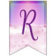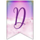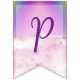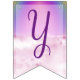 Joining the party theme is a party bunting banner with the letters "Happy Birthday" on each flag and purple sky and cloud with a rainbow for the background with each letter on top. As part of the "Cute Black Fairy" theme this is a cute design for girls on their special day of celebration.