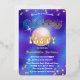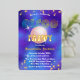 This funky custom party invitation features a retro disco theme on a metallic, pearl style purple and blue background. A sparkly pink disco ball is placed in the centre. The word "Disco" is printed above it in a groovy rainbow font. The word "Party" is printed below it in real gold foil. The name of the guest of honour is printed in a matching gold foil elegant font. You can personalise the invitation to include your own event information or other custom text. Faded lights border the top and bottom portions. It's great for a bachelorette party, birthday, or other special disco themed event.