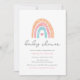 Invite your guests to your baby shower with this beautiful Rainbow and Hearts Baby Shower invitation with a cute watercolor rainbow and a patterned background. Suitable for a mother expecting a baby girl or boy, or change the background color to suit your party.