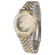 The watch is very nice, the picture is great and the watch looks like quality. The only problem I am having with it is that it is a little too large, and I also can't figure out how to open the clasp. No directions came with it. Very good. The printing is perfect and the watch keeps good time.