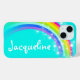 Help protect your child's device with this pretty colourful rainbow case. Personalised with your childs name up to 10 letters. This example reads Jacqueline. Exclusively designed and illustrated by Sarah Trett.