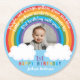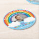 Rainbow Arch Over The Clouds Baby's First Birthday Round Paper Coaster