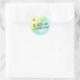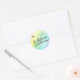 This pretty sticker features a watercolor rainbow of colours and the text "A little one is on the way".  Use as a favour tag or envelope seal.
