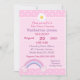 Rainbow Baby Shower Invitation with a white flower. and pink background. Customise baby shower invitations with your party details.
