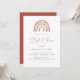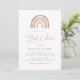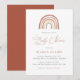 Invite your guest with our elegant and modern rainbow baby shower invitation features watercolor boho rainbow. Personalise with your baby shower details in simple layout and elegant handwritten style font.