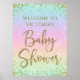 Rainbow baby shower welcome sign with pretty gold letters on a rainbow and gold glitter background. This rainbow baby shower welcome sign is easily customised for your event by simply adding your details. You can also remove the background and add the colour of your choice.