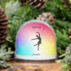 Capture the grace and beauty of a ballerina with this enchanting rainbow-themed snow globe. The silhouette of a ballerina dances against a vibrant rainbow backdrop, accented with twinkling stars, creating a magical winter wonderland scene. Personalise it with a name for a unique and memorable keepsake. This personalised snow globe makes a perfect gift for birthdays, holidays, or any special occasion for ballerinas of all ages. It's a delightful decoration to add a touch of elegance and whimsy to any room.