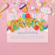 Customise for your child's birthday party by changing fonts and background colours, with detail area on the back, or clear and upload a photo. Background colours and all fonts are editable.