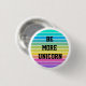 RAINBOW BE MORE UNICORN PIN BUTTON BADGE, with modern pastel rainbow background.