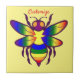 Rainbow-coloured bee to customise, personalise by adding your name or message on any colour background