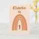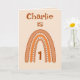 This sweet rainbow design can be personalised with Name and Age. Pretty Peach, Orange & cream colours. The verse inside can be kept, changed or removed by following the 'personalise' prompt.