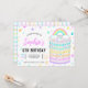 This rainbow birthday party invitation is ideal for a little girls 6th birthday party. It features a hand drawn rainbow drip birthday cake with icing and sprinkles on top surrounded by stars and confetti. On the back side is a matching rainbow check pattern. Customise the text to fit your special occasion. See the whole matching collection.