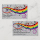 Black musical notes floating on a rainbow of swirling rainbow colours. The background is grey musical notes on a lighter shade. Add your own personalised name to create a unique Business card for the music lover. sgb01