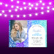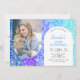 Blue shade colour stripes with floral design birthday party invitation with your photo on the front of the card. Simple trendy invite card perfect for a stylish female bday celebration. Can be customised to any age.