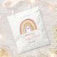 Rainbow Boho Peach Purple Baby Shower favour bag features an adorable duo of rainbow in shades of pink, blush, mustard and purple, along with modern calligraphy.