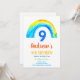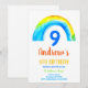 Boys kids 9th birthday party invitation, rainbow blue and primay colours.
