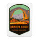 A vintage travel badge design of Rainbow Bridge National Monument the world’s highest natural bridge in southern Utah, United States.