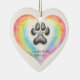 A heartfelt pet memorial ornament featuring a hand-painted watercolor rainbow heart with a charcoal paw print and the quote, “In every lifetime, I’ll find you.”