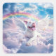 Rainbow Bridge, White Dog in Heaven Square Sticker