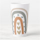 A modern and trendy whimsical large painted rainbow and hearts in beige, grey, black and brown. White background.