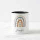 A modern and trendy whimsical painted rainbow and hearts in beige, grey, black and brown. White background. Personalise and add a name, black hand lettered style script.