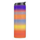 A vibrant thermal tumbler wrapped in bold horizontal brushstroke stripes blending deep purples, fiery oranges, electric blues, sunny yellows and rich reds into a smooth artistic gradient. The painterly texture adds a warm, expressive, hand‑crafted feel, while the insulated construction keeps drinks hot or cold on the go. This modern, art‑inspired tumbler brings uplifting colour and creative energy to commutes, workouts and everyday routines.