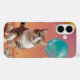 A playful cat illustration with rainbow bubbles, perfect for vibrant and magical phone case designs.