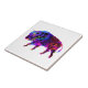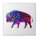 a decorative artwork of a very colourful buffalo or bison featuring all the colours of the rainbow on its silhouette on a ceramic tile.
