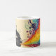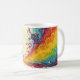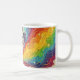 Start your day with a burst of color! This striking ceramic coffee mug features a stylized Black Cat looking up as a vivid stream of exploding rainbow-colored smoke or energy erupts from its mouth.