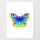 Rainbow, realistic, artistically drawn, bright colours peacock butterfly with textured detailed wings on white background. Rainbow butterfly.