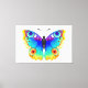 Rainbow, realistic, artistically drawn, bright colours peacock butterfly with textured detailed wings on white background. Rainbow butterfly.