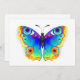 Rainbow, realistic, artistically drawn, bright colours peacock butterfly with textured detailed wings on white background. Rainbow butterfly.