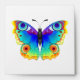 Rainbow, realistic, artistically drawn, bright colours peacock butterfly with textured detailed wings on white background. Rainbow butterfly.