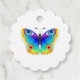 Rainbow, realistic, artistically drawn, bright colours peacock butterfly with textured detailed wings on white background. Rainbow butterfly.