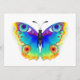 Rainbow, realistic, artistically drawn, bright colours peacock butterfly with textured detailed wings on white background. Rainbow butterfly.