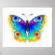 Rainbow, realistic, artistically drawn, bright colours peacock butterfly with textured detailed wings on white background. Rainbow butterfly.