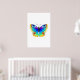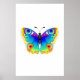 Rainbow, realistic, artistically drawn, bright colours peacock butterfly with textured detailed wings on white background. Rainbow butterfly.