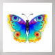 Rainbow, realistic, artistically drawn, bright colours peacock butterfly with textured detailed wings on white background. Rainbow butterfly.