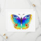 Rainbow, realistic, artistically drawn, bright colours peacock butterfly with textured detailed wings on white background. Rainbow butterfly.