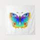 Rainbow, realistic, artistically drawn, bright colours peacock butterfly with textured detailed wings on white background. Rainbow butterfly.