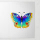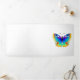 Rainbow, realistic, artistically drawn, bright colours peacock butterfly with textured detailed wings on white background. Rainbow butterfly.