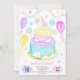 This rainbow cake birthday party invitation for girls features a hand drawn two tiered birthday cake with ice cream and lollipops and a rainbow, there are also balloon and confetti making it a really fun and exciting rainbow invitation. On the back is a matching rainbow check pattern. Customise the text for your occasion. See the whole matching collection.