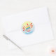Sticker with a smiling, rainbow cake that’s wearing a party hat. The design shows the birthday kid’s name and a happy birthday message. The text can be customised.