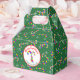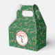 These Christmas favour boxes have a rainbow candy canes design that are perfect for cookie exchange boxes. There are two different swirled rainbow candy canes with snowflakes on agreen background. There is a front and back label with a large crossed candy canes, the greeting and the givers name. You can personalise this with your own greeting or name and change the pattern to be smaller or bigger on the favour box. A super fun way to package your yearly Christmas cookie exchange gifts. Happy baking!