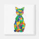 A rainbow kitty painting. The cat is sitting with their tail wrapped around their paws.
