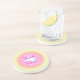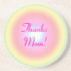 This sweet Mother's Day coaster features an abstract circular design of concentric circles ranging in pastel rainbow colors from green to yellow to light pink to a shimmering blue center. The text reads: Thanks Mom. It can be customized to suit your needs.
