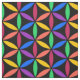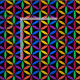 Abstract geometric design of interlacing circles, bright rainbow colours on black background